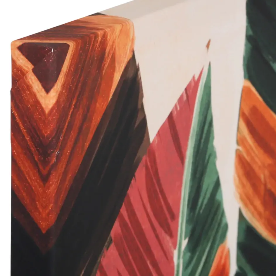 Découvrez le Tableau feuilles en tissu multicolore de dimensions 60x90cm – Seguia, une pièce essentielle pour apporter une touche de fraîcheur à votre décoration.