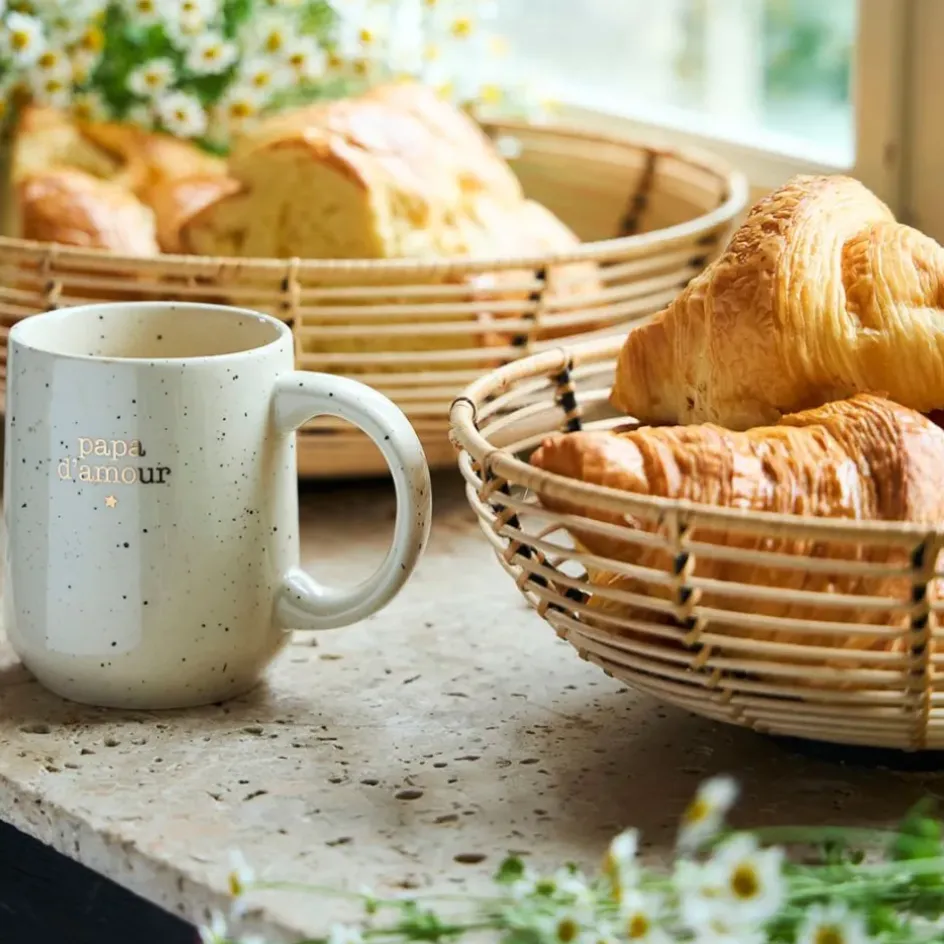 Découvrez un incontournable du petit déjeuner et des pauses café avec ce mug papa en grès blanc de 38 cl de chez Beezz.
