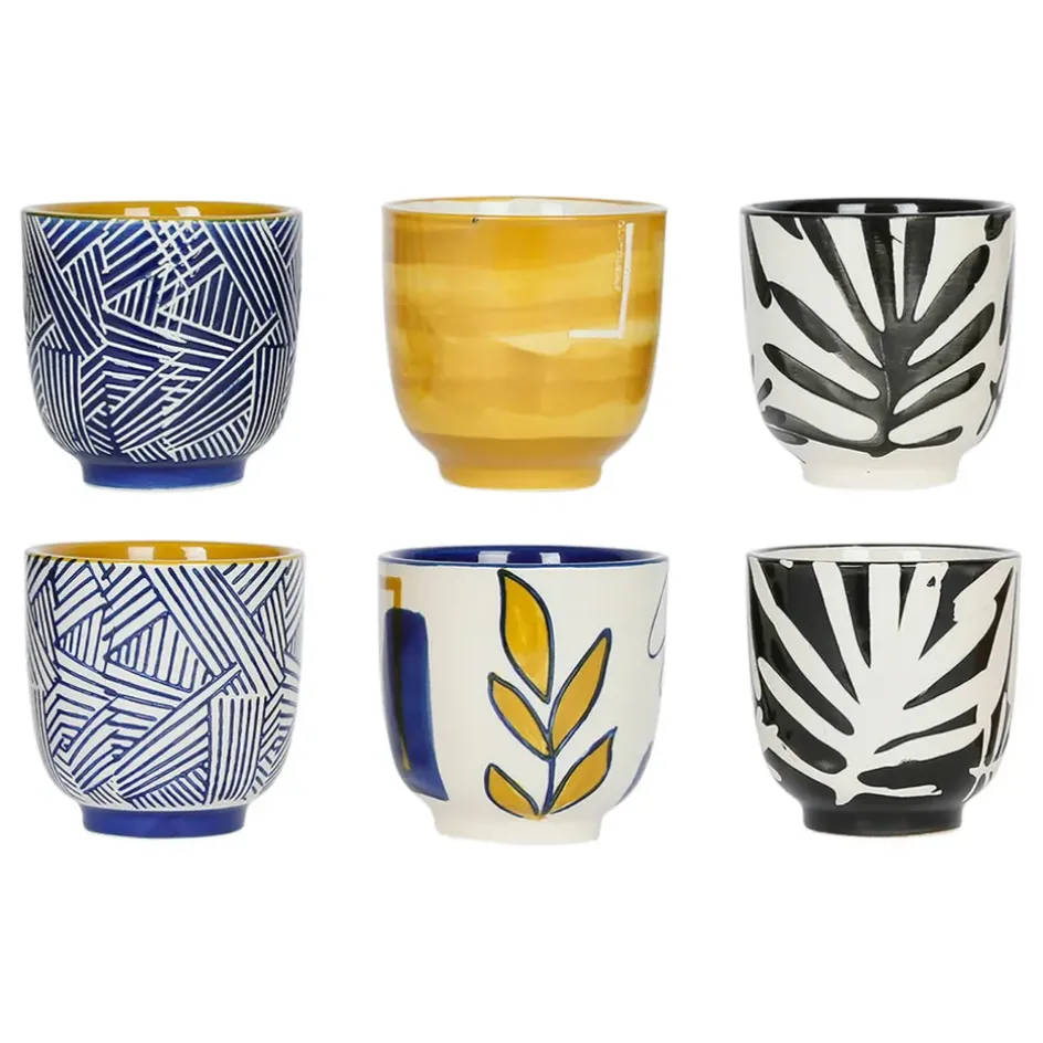 Découvrez nos Tasses arty folk bleu en grès de 15cl par lot de 6, parfaits pour ajouter une touche artistique à votre table.Grès