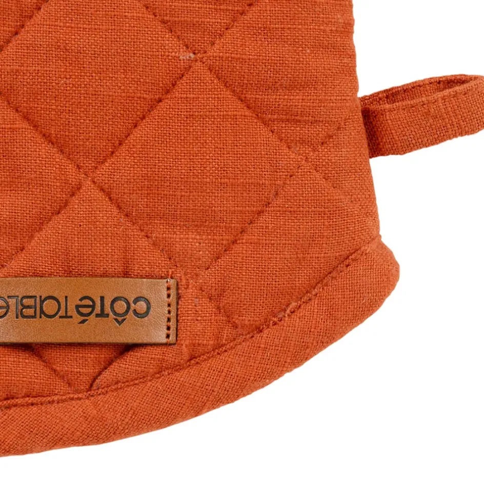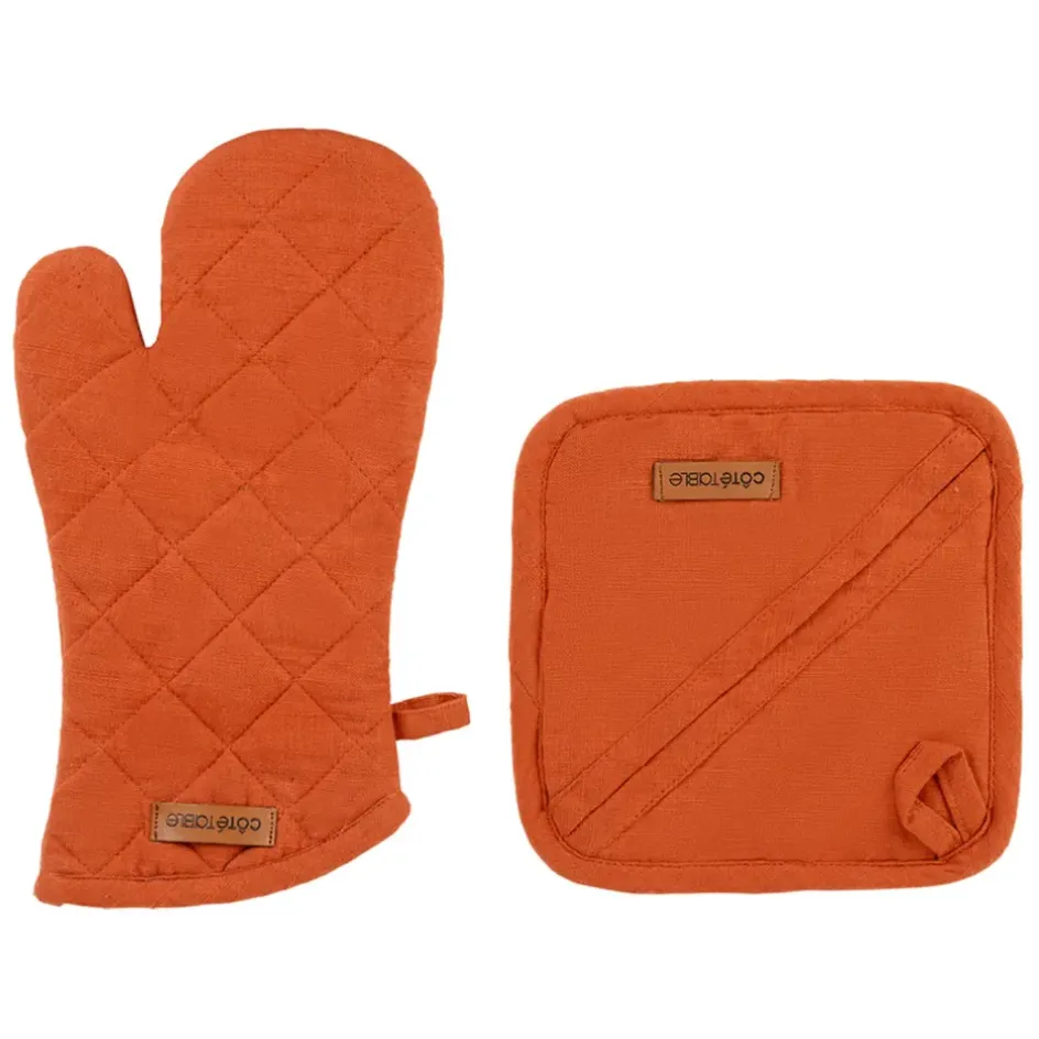 Découvrez le duo indispensable pour vos aventures culinaires : le gant et la manique en coton brique.