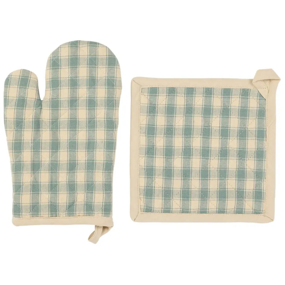 Découvrez le charme intemporel de notre ensemble gant et manique en coton vichy sauge – Campagne.