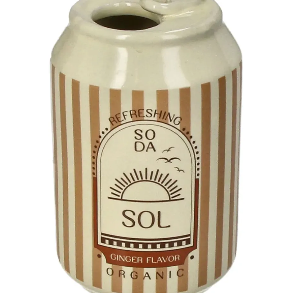 Ce vase en faïence nude reprend la silhouette originale d’une canette de soda, twistée avec un look vintage et des rayures verticales pleines de charme.