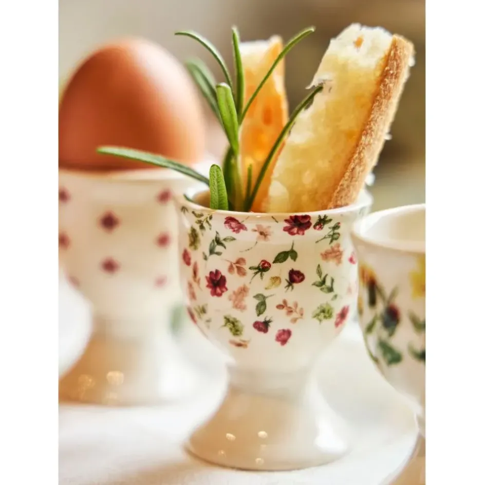 Chaque coquetier est décoré de motifs floraux délicats, apportant une touche champêtre et vivante à votre cuisine.
