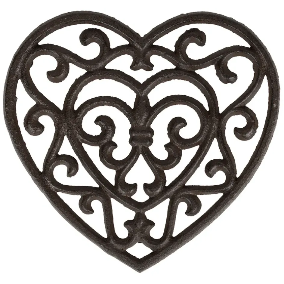 Protégez votre table avec style grâce à ce dessous de plat en fonte en forme de cœur brun, orné d’un motif rhodonea. Ajoutez une touche d’élégance à vos repas et préservez la chaleur de vos plats.Fonte.