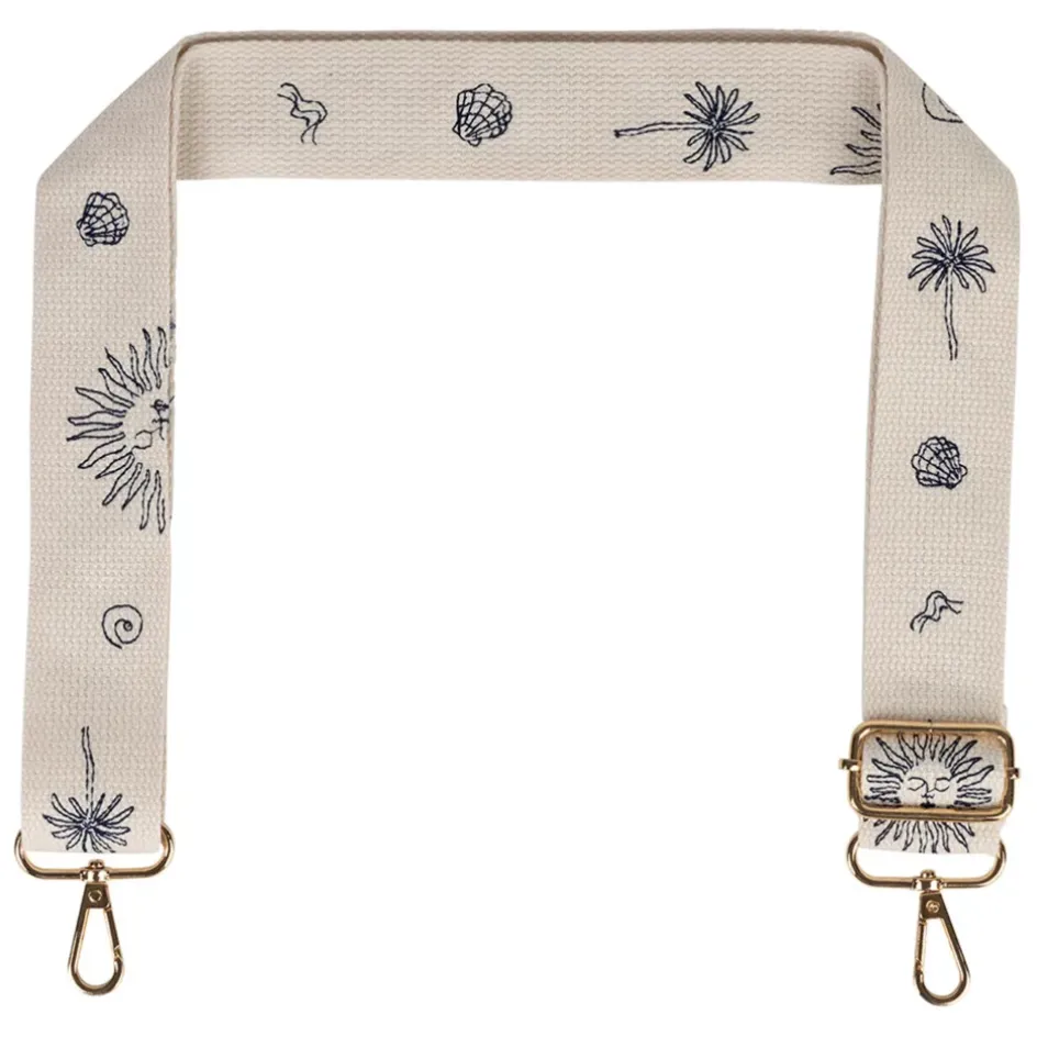Transformez votre sac préféré en une véritable pièce unique avec cette bandoulière brodée, offrant une touche de couleur écru et bleu.