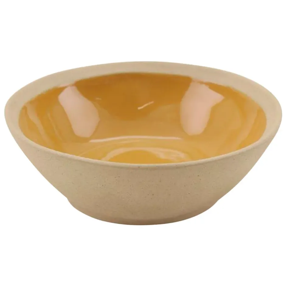 Cette assiette creuse en grès de couleur curry, avec un diamètre de 18 cm, est idéale pour servir vos soupes fumantes, vos ragoûts savoureux ou vos salades composées.
