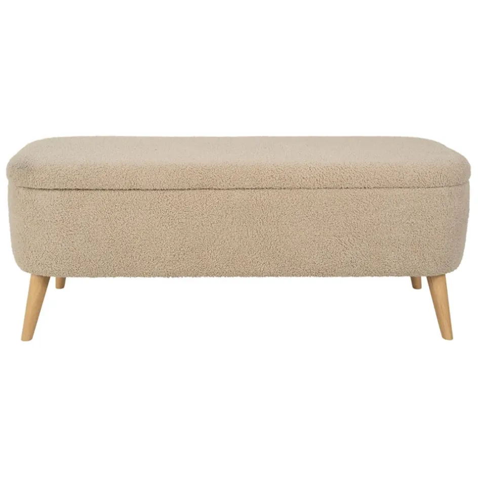 Découvrez le Banc coffre en bouclette sable – Claudine, le mariage parfait de l’élégance et de la praticité.