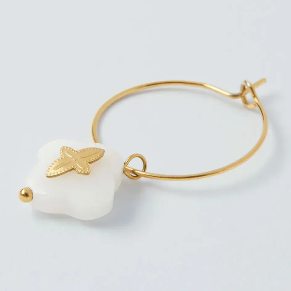Venez découvrir notre Créoles x2 trefle doré+blanc h35mm acier inoxydable+jade de la marque SEMA Design à découvrir sur Fabrique de Styles.Pierre naturelle et perle Omsaé en acier inoxydable. Origines de la pierre : Afrique du Sud et Zimbabwe. Pierres certifiées par un gemmologue français.