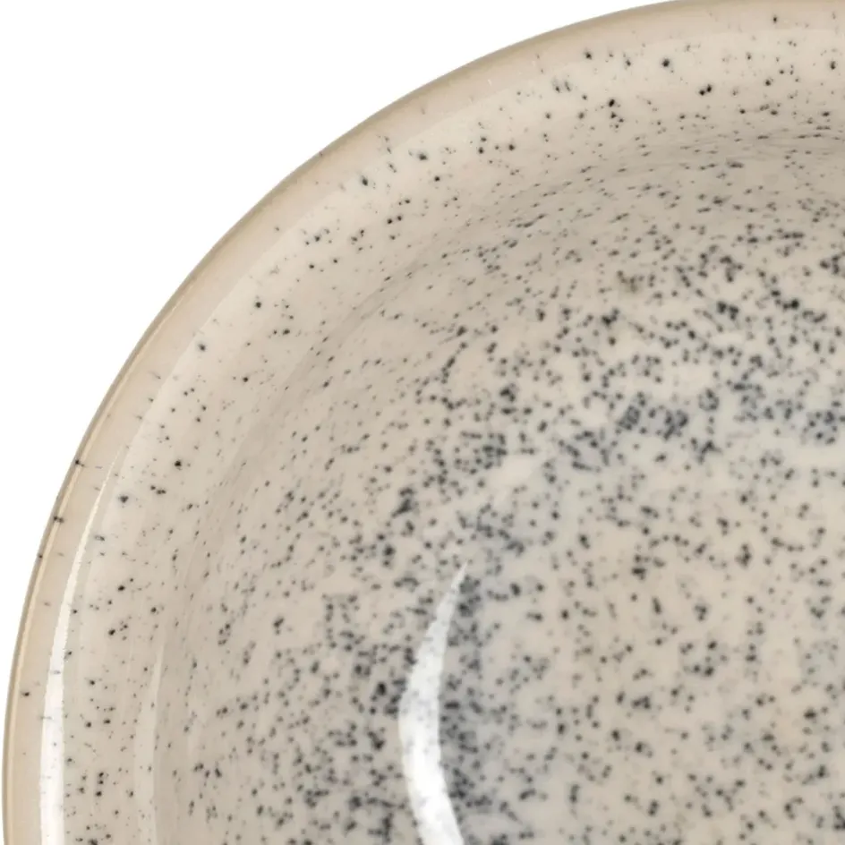 Fabriqué en grès de haute qualité, ce compotier présente une finition blanche mouchetée qui apporte une touche élégante et rustique à votre service de table.