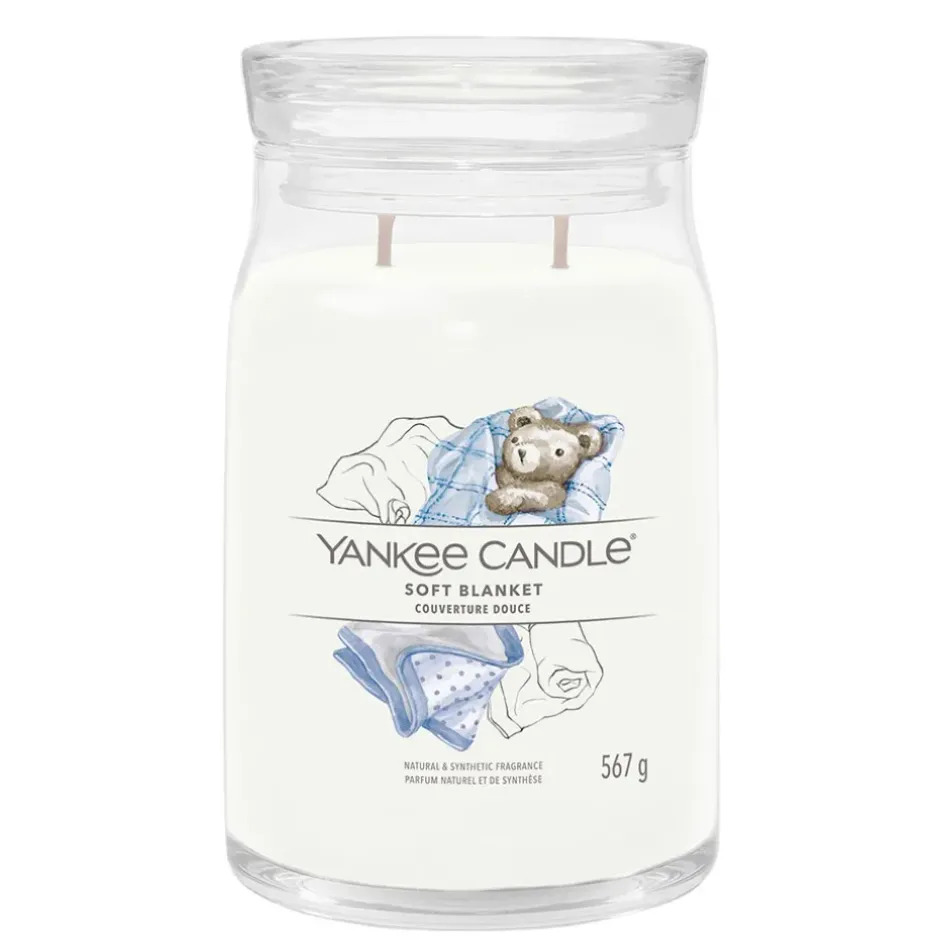 Découvrez la Bougie signature couverture douce jarre grand de Yankee Candle, une expérience olfactive luxueuse et réconfortante.