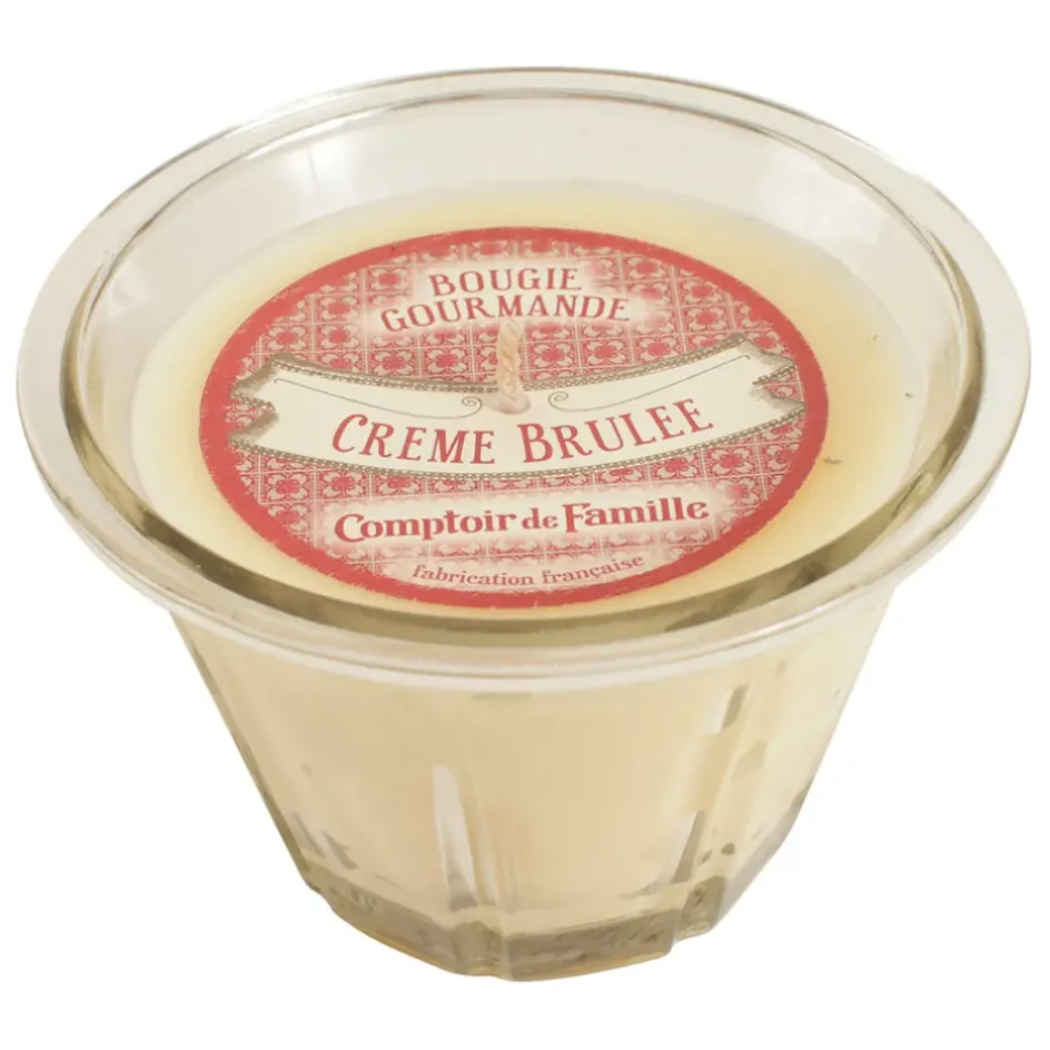 Découvrez une expérience olfactive unique avec cette bougie parfumée inspirée de la crème brûlée.