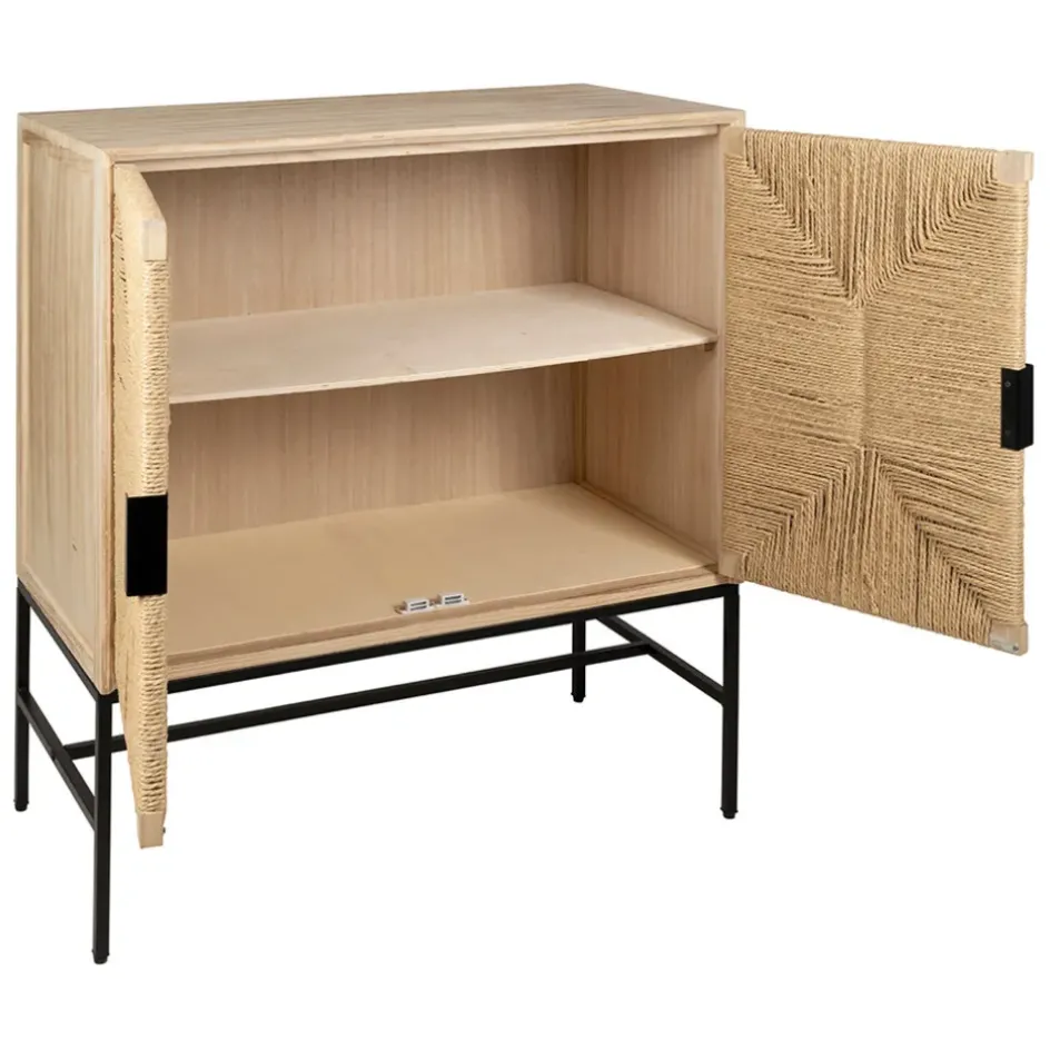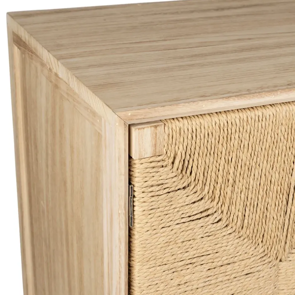 N’attendez plus pour profiter des avantages offerts par ce buffet à deux portes, qui s’impose comme un choix de premier ordre pour ceux qui recherchent tant la praticité que le style.Paulownia + jute + contreplaqué + fer