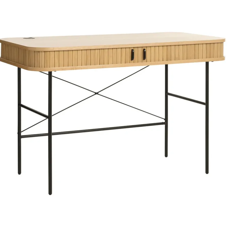 Découvrez le bureau Nola en placage chêne naturel, alliant design minimaliste et fonctionnalité.