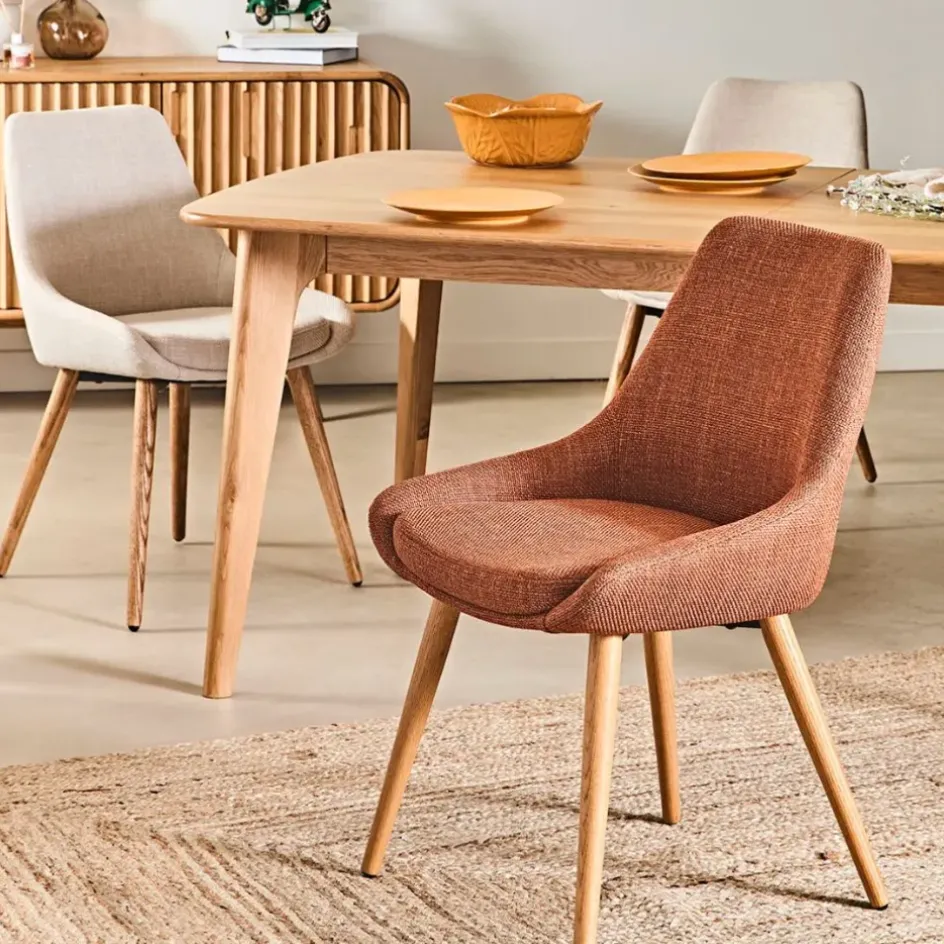 Découvrez notre chaise de salle à manger Ben en tissu cognac !