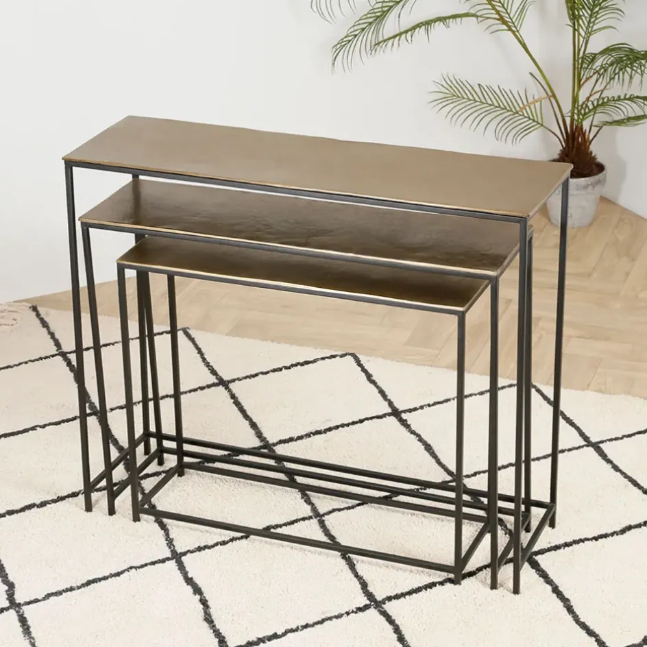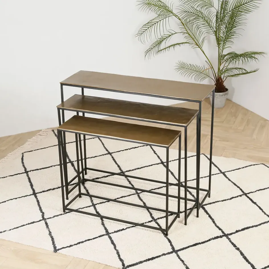 Icône du classique-chic, la console gigogne Felia en fer doré se décline en 3 éléments.