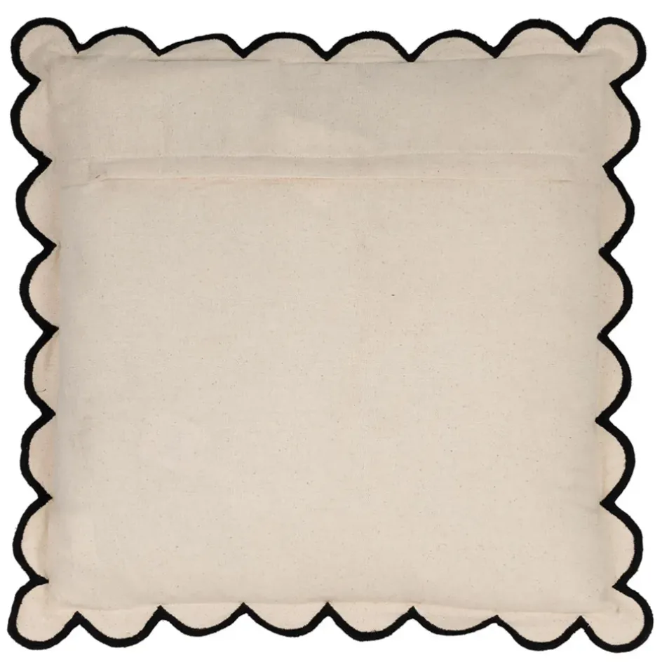 Ajoutez une touche de simplicité élégante à votre intérieur avec cette housse de coussin en coton écru bordée de contours festonnés noirs.