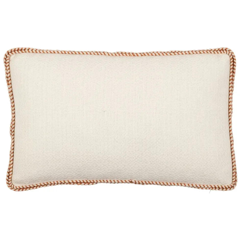 Le contour subtilement tressé en terracotta apporte une note chaleureuse et originale, idéale pour rehausser la sobriété de l’écru.