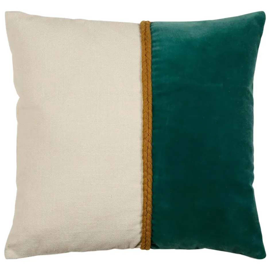 Ajoutez une touche moderne et chaleureuse à votre intérieur avec cette magnifique housse de coussin en velours de coton émeraude et écru de 45×45 cm.