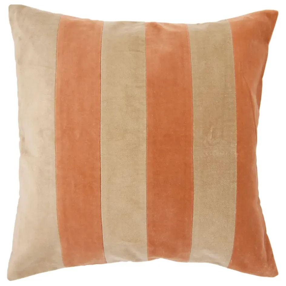 Adoptez cette housse de coussin en velours coton rayée pour personnaliser et réchauffer votre intérieur.