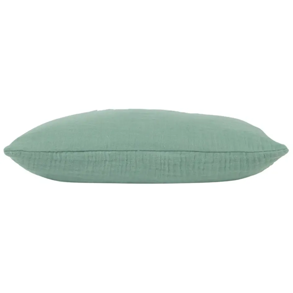 Ajoutez une touche de confort à votre intérieur avec ce coussin en gaze de coton teinté d’un doux coloris sauge.