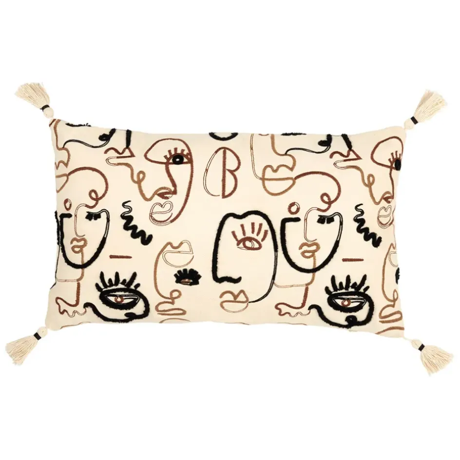 Découvrez notre coussin rectangulaire en terre brulée, avec une housse écru, brun et noir brodée d’un visage. Mesurant 50x30cm, il apportera une touche élégante et chaleureuse à votre intérieur.Coton / Cotton