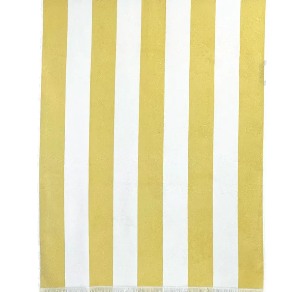 Découvrez un accessoire estival incontournable : notre drap de plage rayé en coton paille 90×170 cm.
