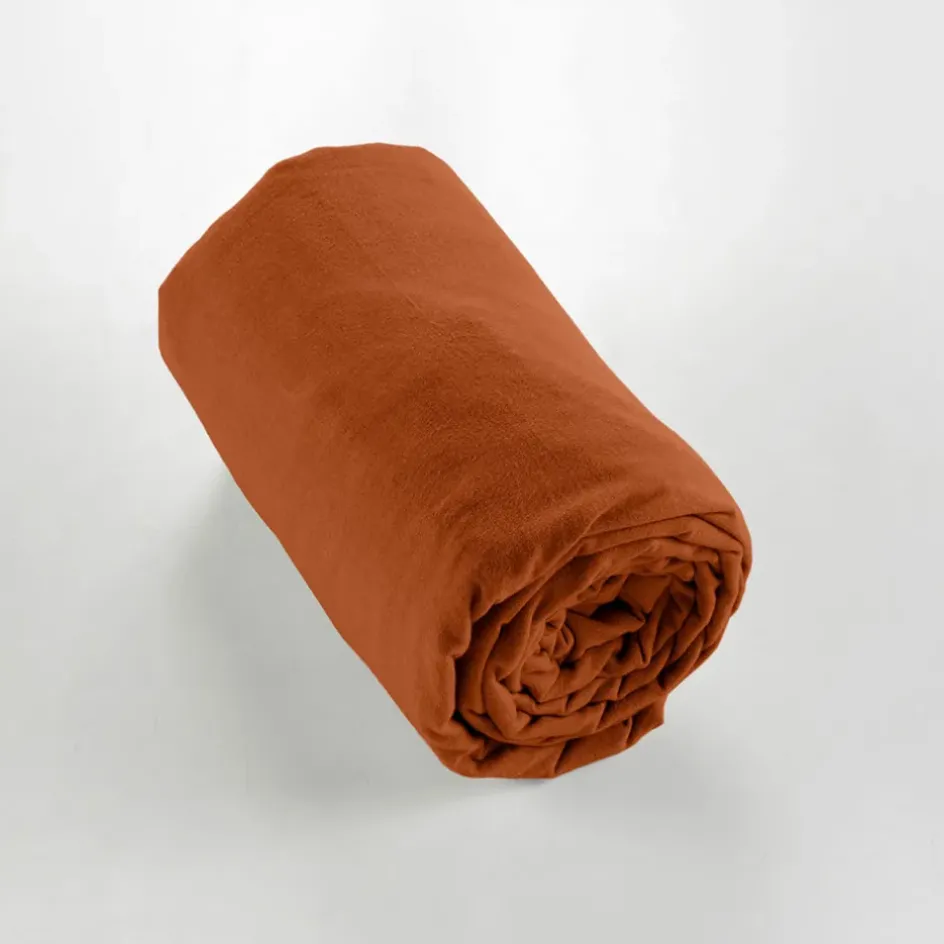 Découvrez notre drap housse en coton orange Candice de dimensions 140x190cm.