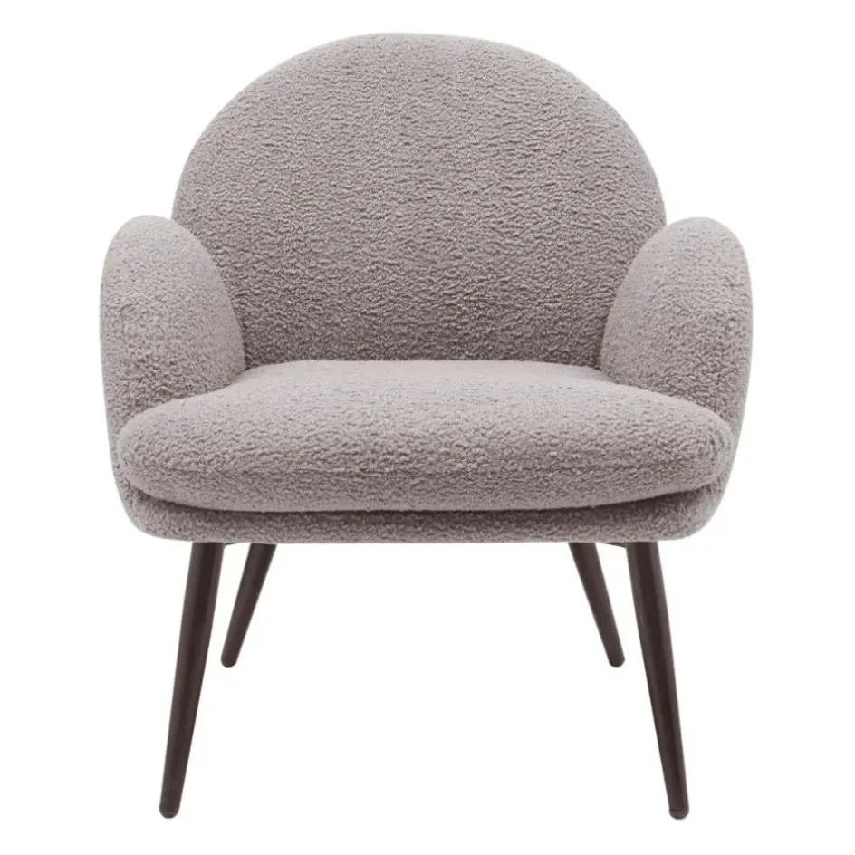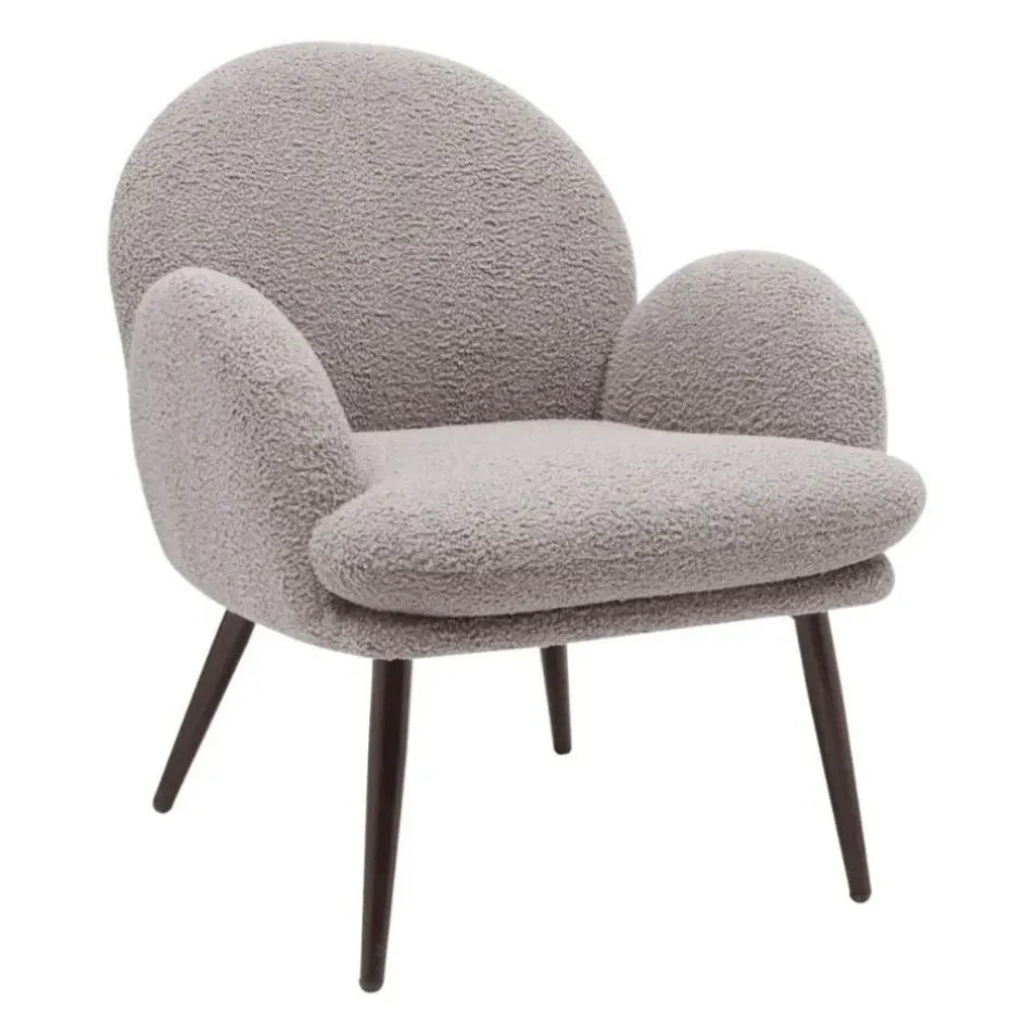Ce fauteuil Oria en tissu bouclette gris foncé fera un bel effet dans votre salon ou votre bureau.