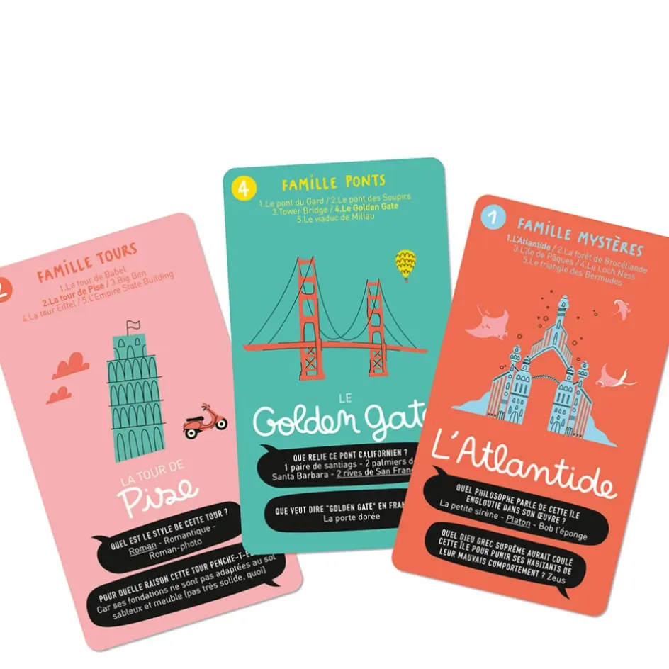 7 familles de 5 cartes, 70 questions à se poser à tour de rôle et à dégainer en voiture,