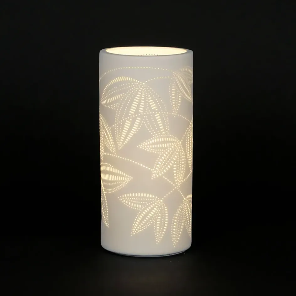 Plongez dans l’univers apaisant de l’éclairage doux avec cette lampe cylindrique en porcelaine de 24 cm, une véritable pièce maîtresse pour votre intérieur.