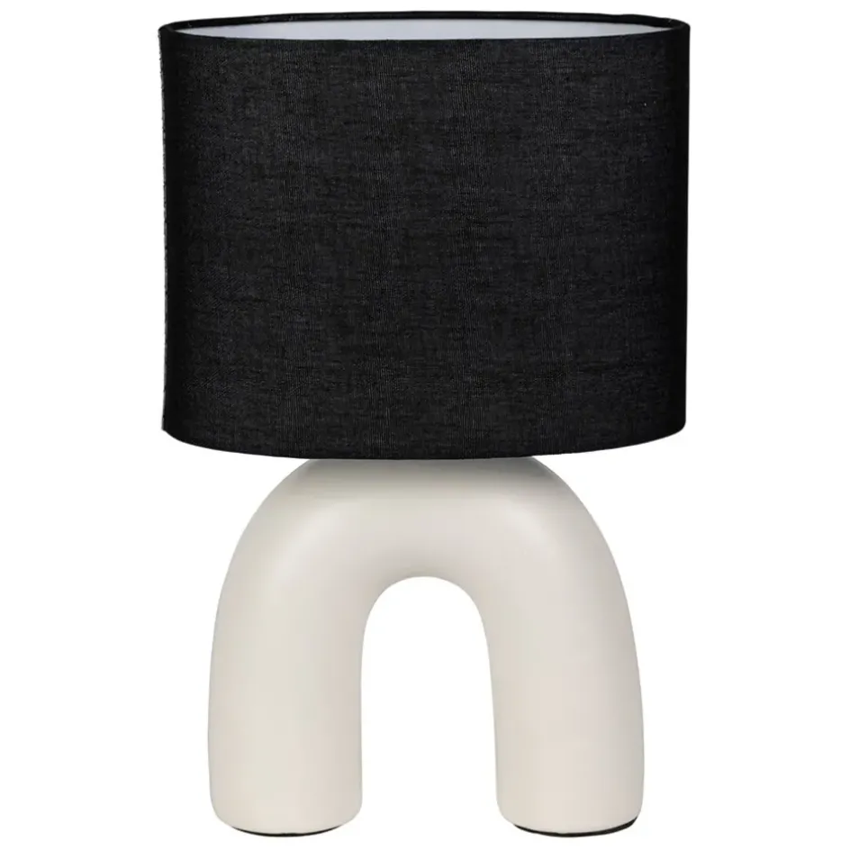 Fabriquée en coton écru et noir, cette lampe mesure 34,5 cm de hauteur, idéale pour éclairer votre espace de vie avec style.