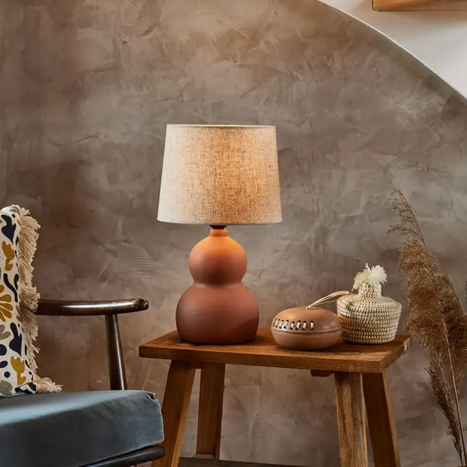 Son abat-jour en coton diffuse une lumière douce et tamisée, créant une atmosphère cosy dans votre pièce.Céramique + lin