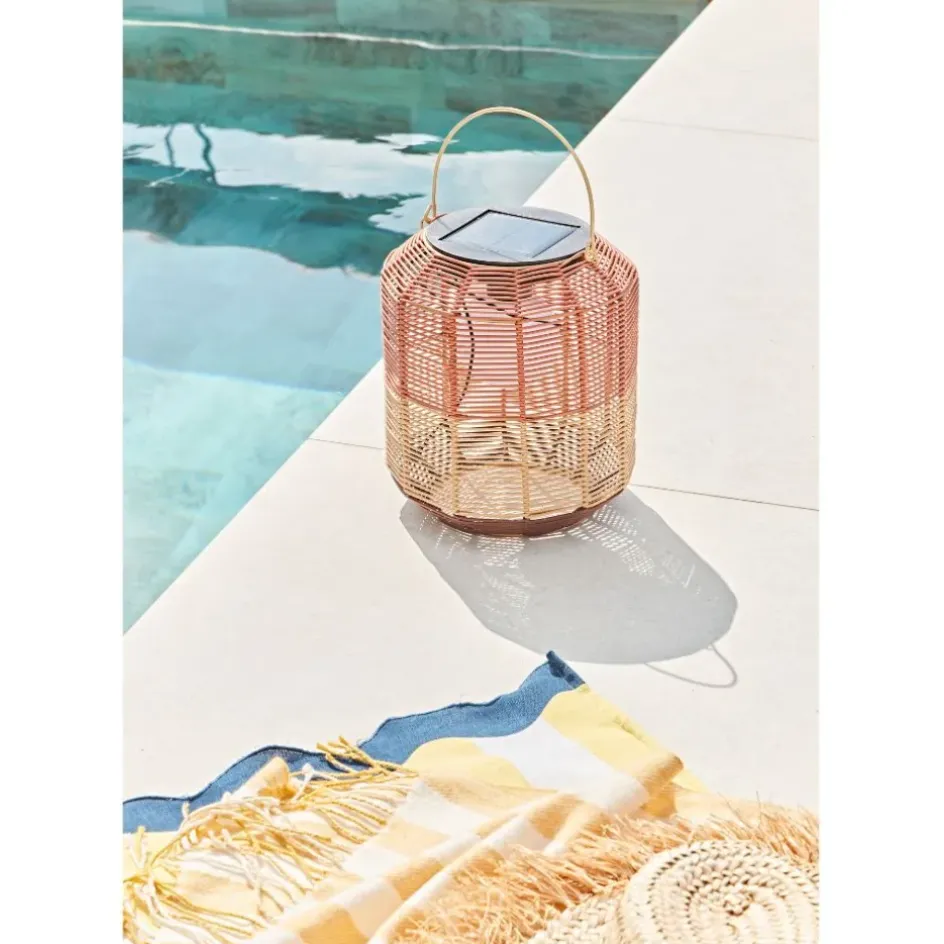 Ajoutez une touche chaleureuse et accueillante à votre espace extérieur avec cette lanterne solaire en résine tressée brun de 28 cm.