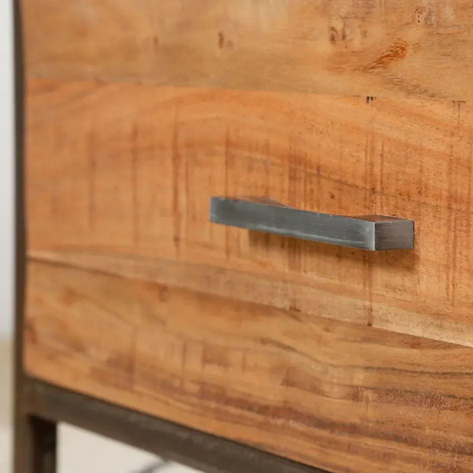 Fabriquée en bois d’acacia massif et en métal, cette pièce s’intègre bien