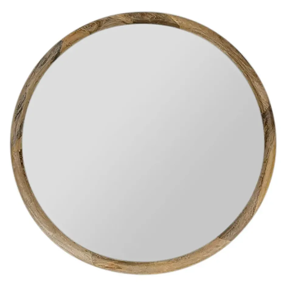 Avec le miroir rond en manguier et panneau de bois d80cm – Hervea, transformez n’importe quelle pièce en un espace accueillant et visuellement attrayant.