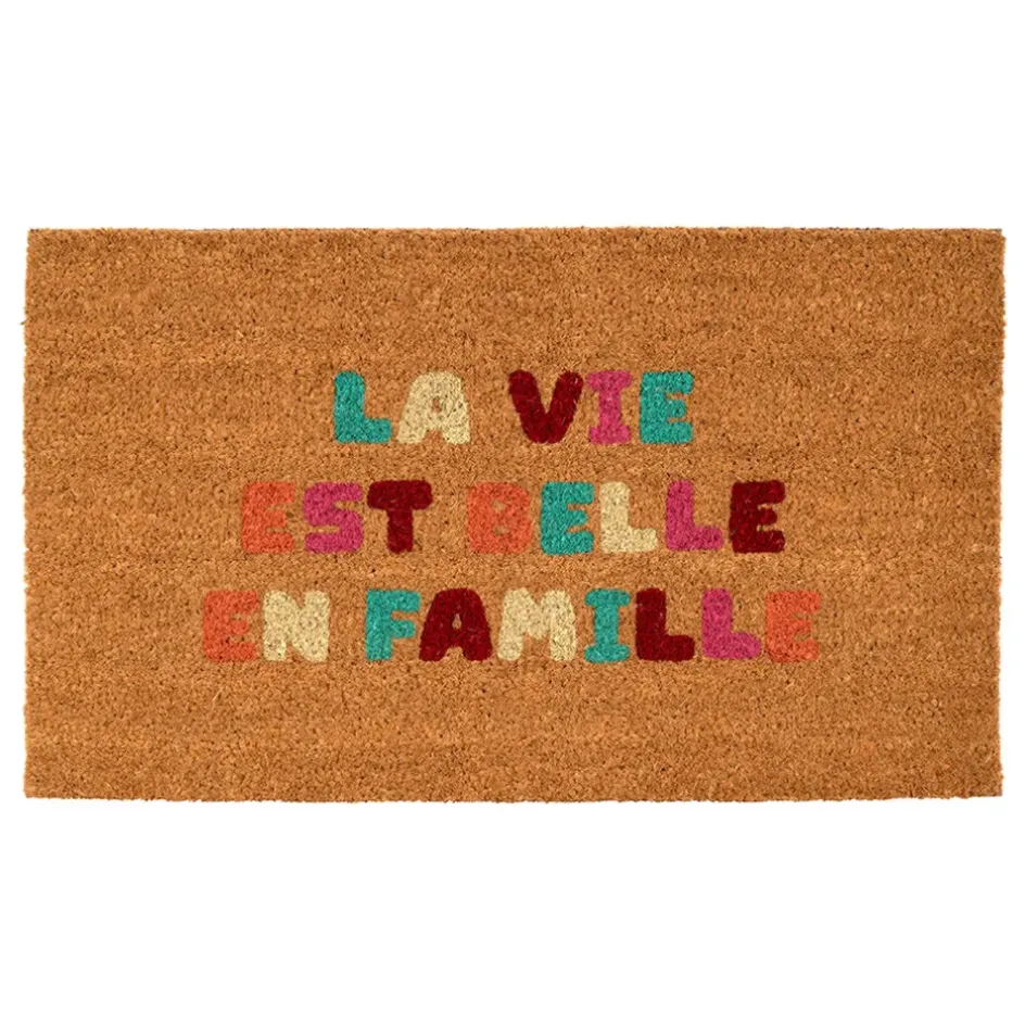 Découvrez notre paillasson en coco multicolore de la collection ‘La vie est belle’, idéal pour apporter une touche de gaieté à votre entrée !