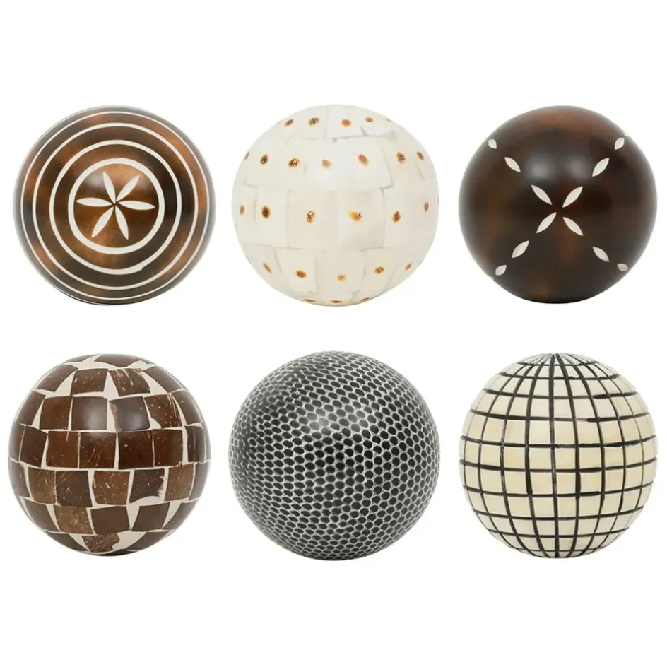 Ajoutez une touche déco avec ce lot de 6 boules décoratives en résine brun et blanc.