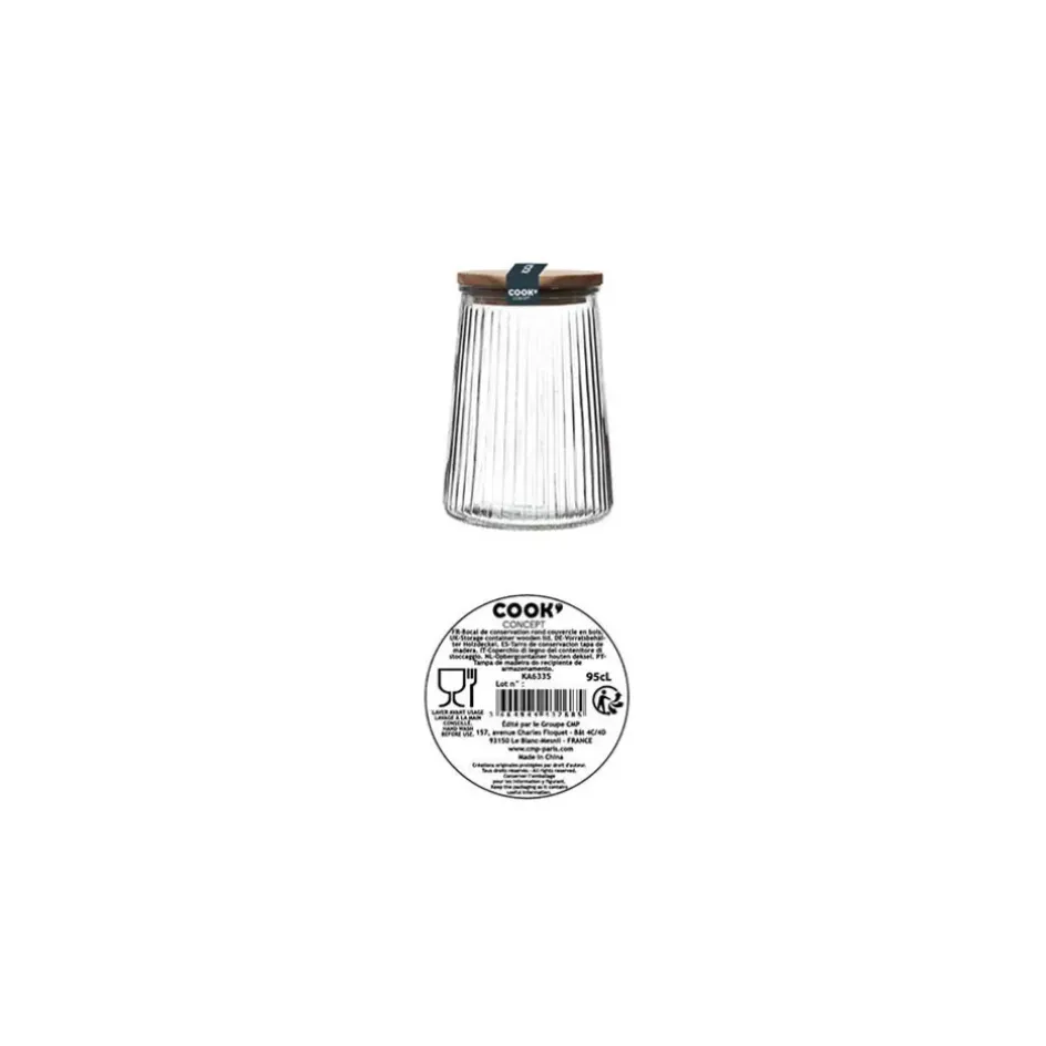 Ce Joli bocal strié sera idéal pour conserver et présenter vos aliments. Pratique, son bouchon en acacia préservera les saveurs de vos aliments !Porcelaine