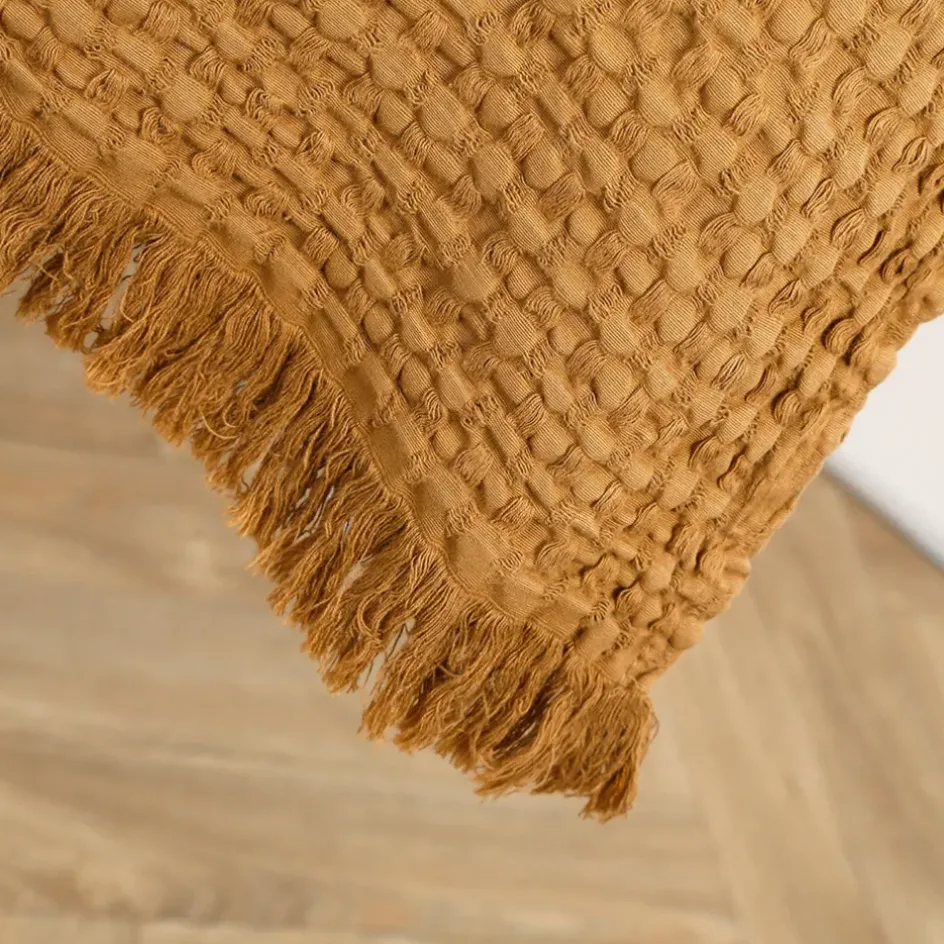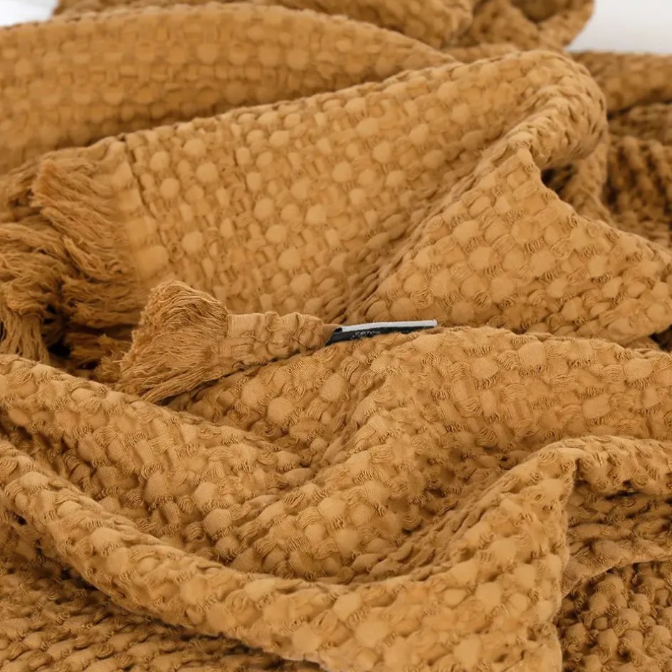 Imaginez-vous confortablement installé sur votre canapé, enveloppé dans ce plaid inspiré des nuances chaleureuses du tabac.