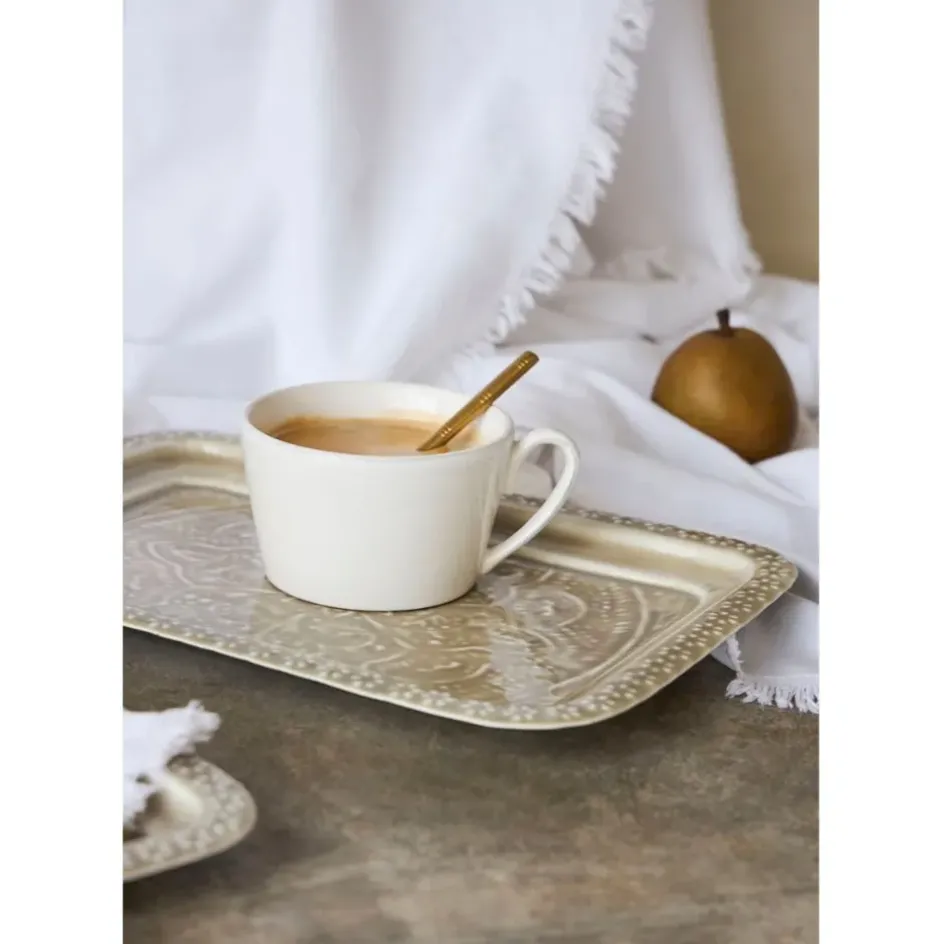 Fabriqués en fer, ces plateaux séduisent par leur design épuré et leur coloris grège intemporel.
