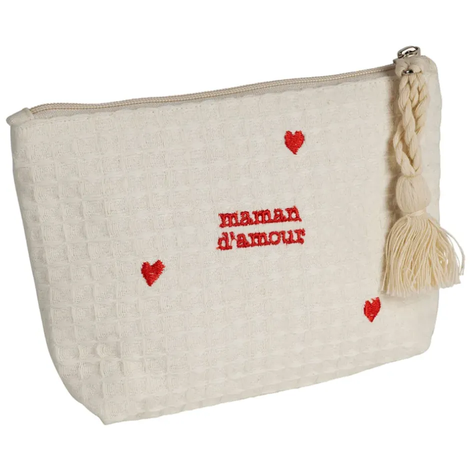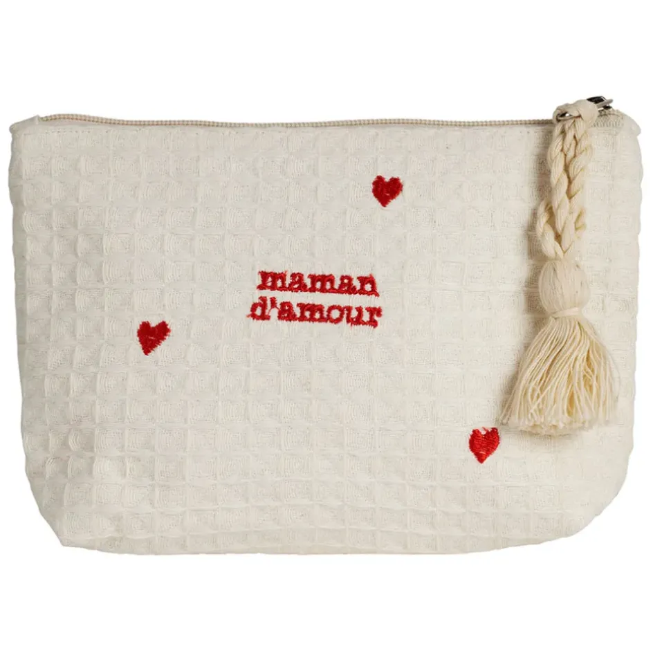 Découvrez notre pochette en coton écru et rouge, l’accessoire indispensable pour toutes les mamans dynamiques.