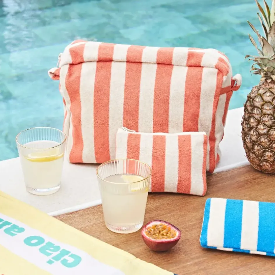 Cette pochette corail, issue de la collection Palma, est parfaite pour ceux qui aiment voyager léger tout en conservant leurs indispensables à portée de main.