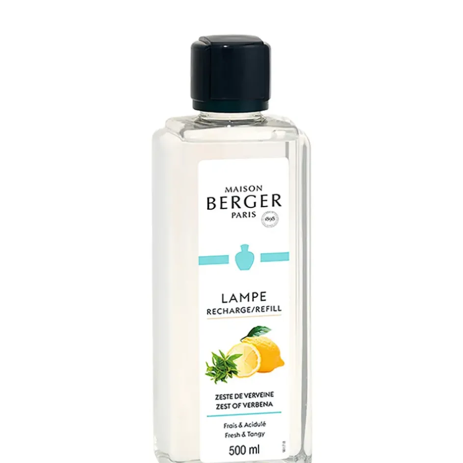 Découvrez notre recharge parfum pour lampe 500 ml, au délicieux zeste de verveine, proposée par Maison Berger.