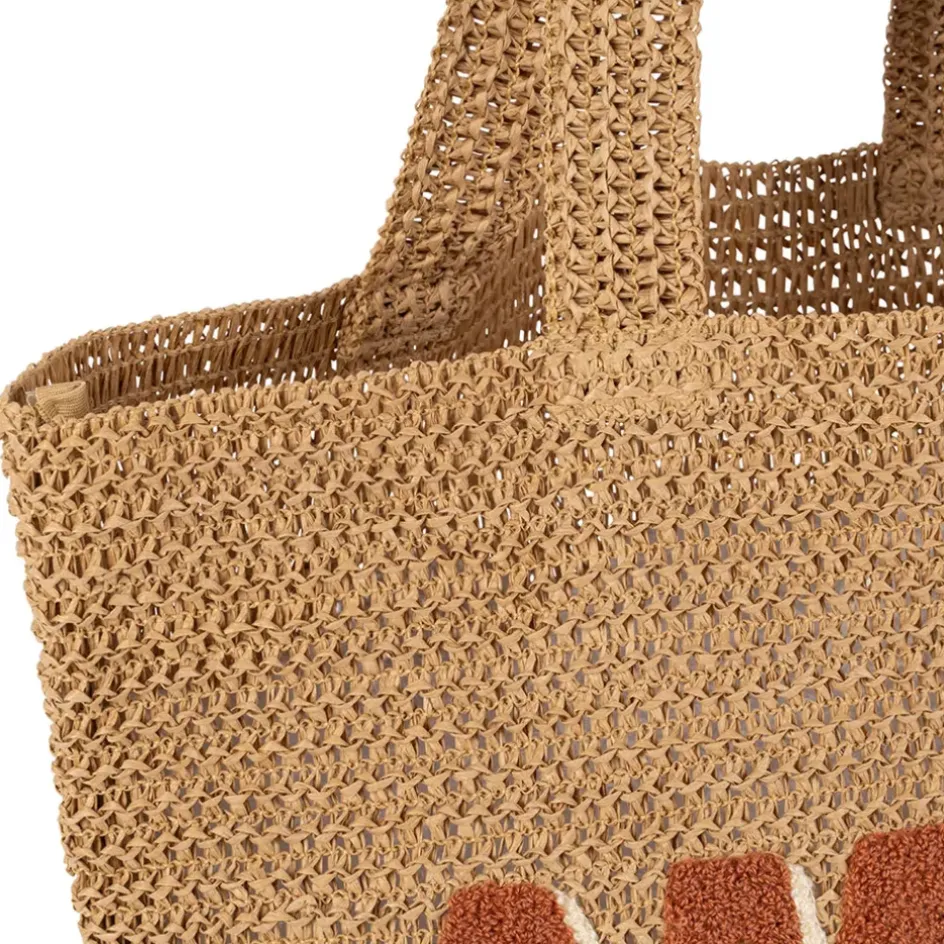 Découvrez le sac brodé ‘amore’ en corde papier naturel et terracotta – Lumi, un accessoire tendance et pratique pour vos loisirs.