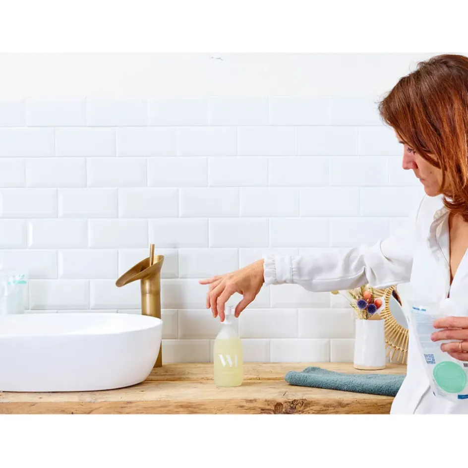 Puis, vous le remplissez grâce à son éco-recharge si légère qu’elle réduit d’au moins 70% votre consommation de plastique sans aucun effort.Papier, PP, PE-LD