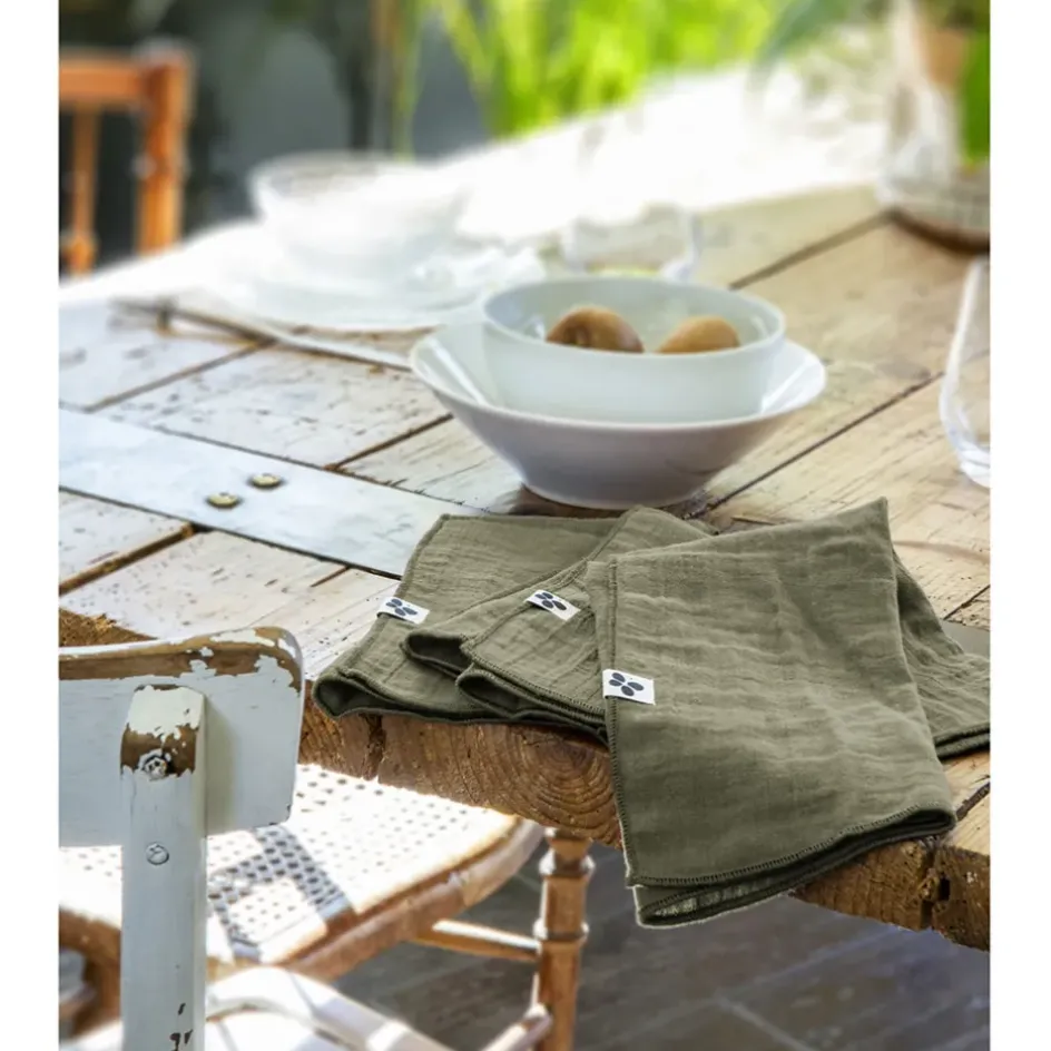 Ajoutez une touche de charme et d’élégance à votre table avec ce lot de 3 serviettes de table romarin en gaze de coton 40x40cm par Gaia.