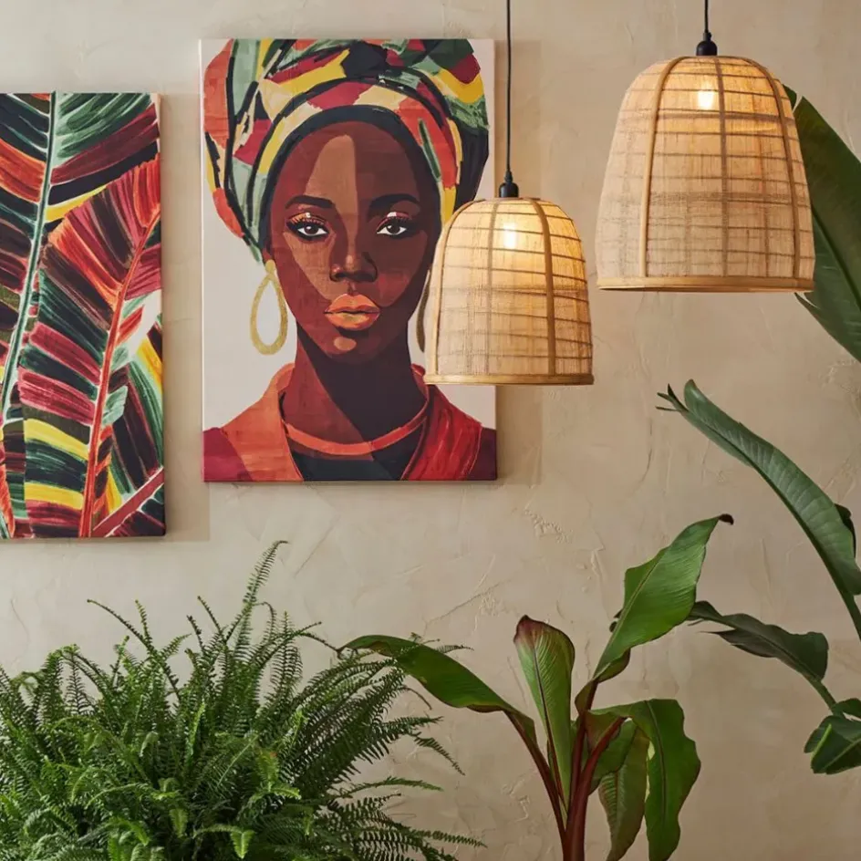 Ajoutez une touche de nature et de modernité à votre intérieur avec le lot de 2 suspensions en lin et bambou naturel Plaka.
