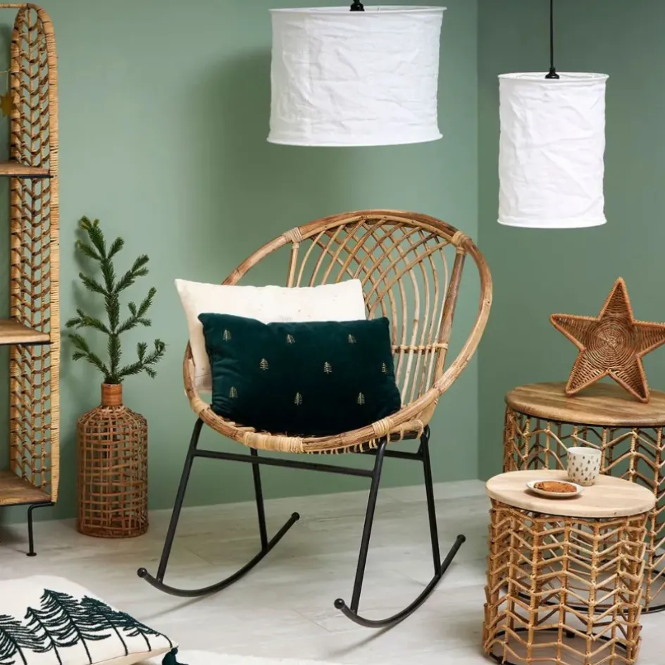 La première, plus grande (d45xh35 cm), convient parfaitement au-dessus d’une table ou dans un coin où vous souhaitez créer une lumière douce et enveloppante.