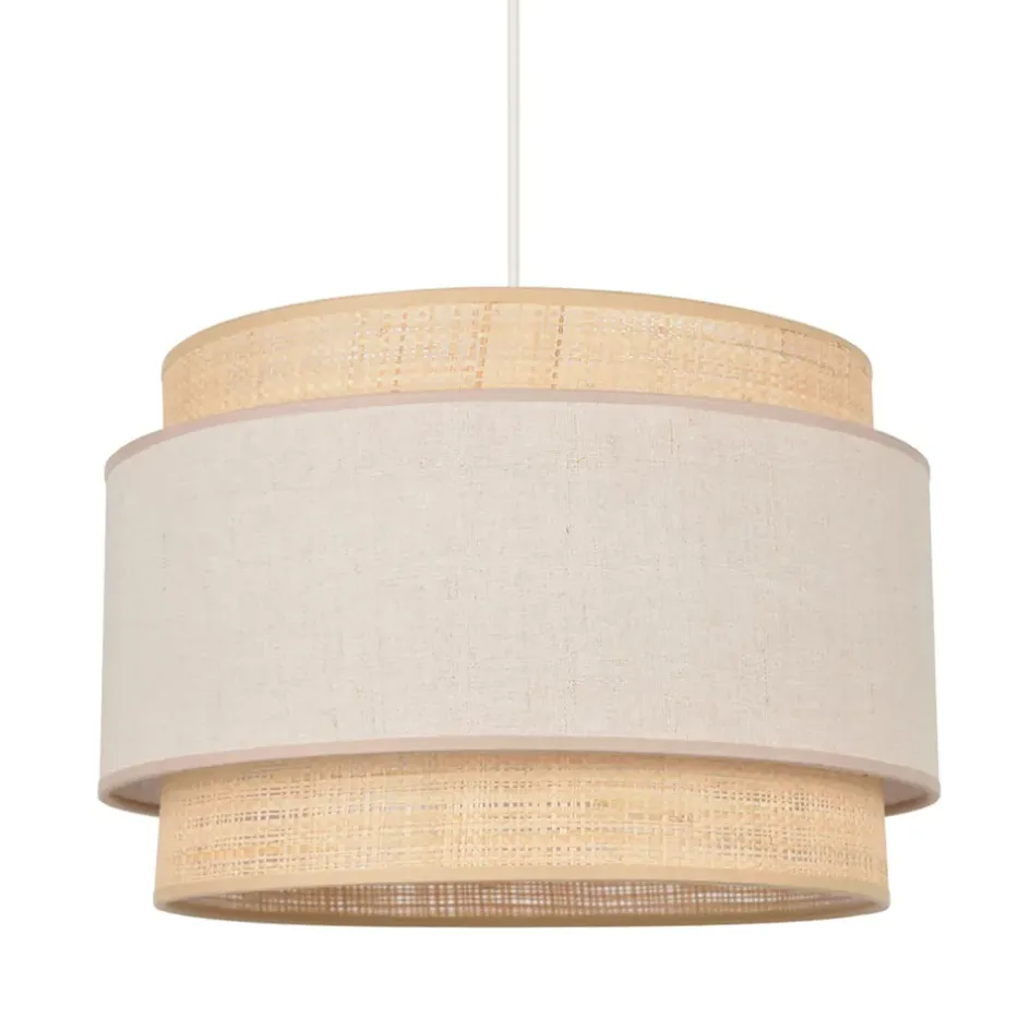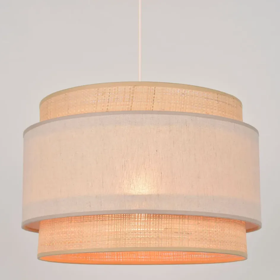 Suspension double cylindre bi-matière en pyla et raphia.