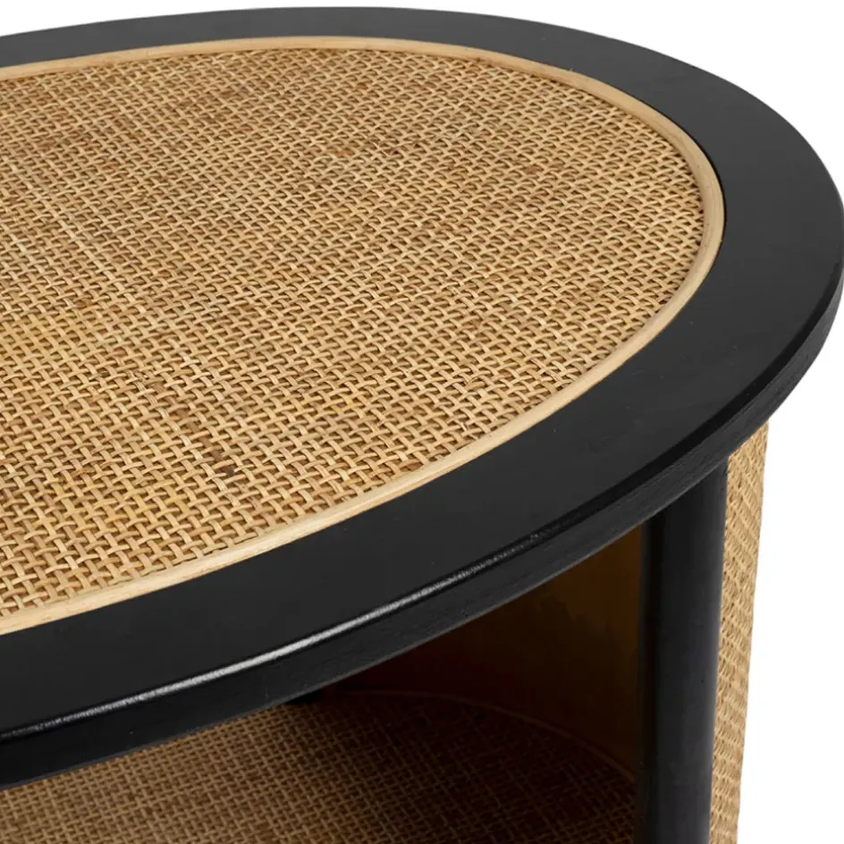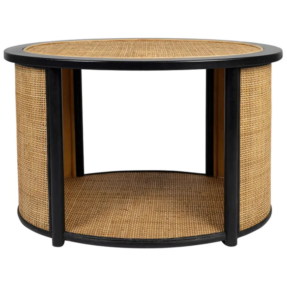 Découvrez le charme intemporel de notre table basse en rotin et sapin naturel et noir, idéale pour sublimer votre salon.